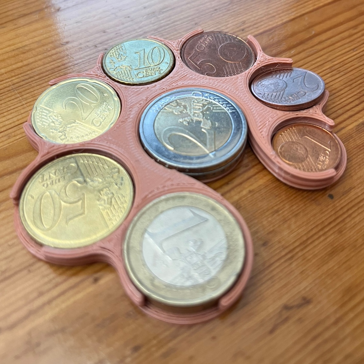 The Spiral EUR Bank is a compact euro coin organizer with a spiral layout that keeps all