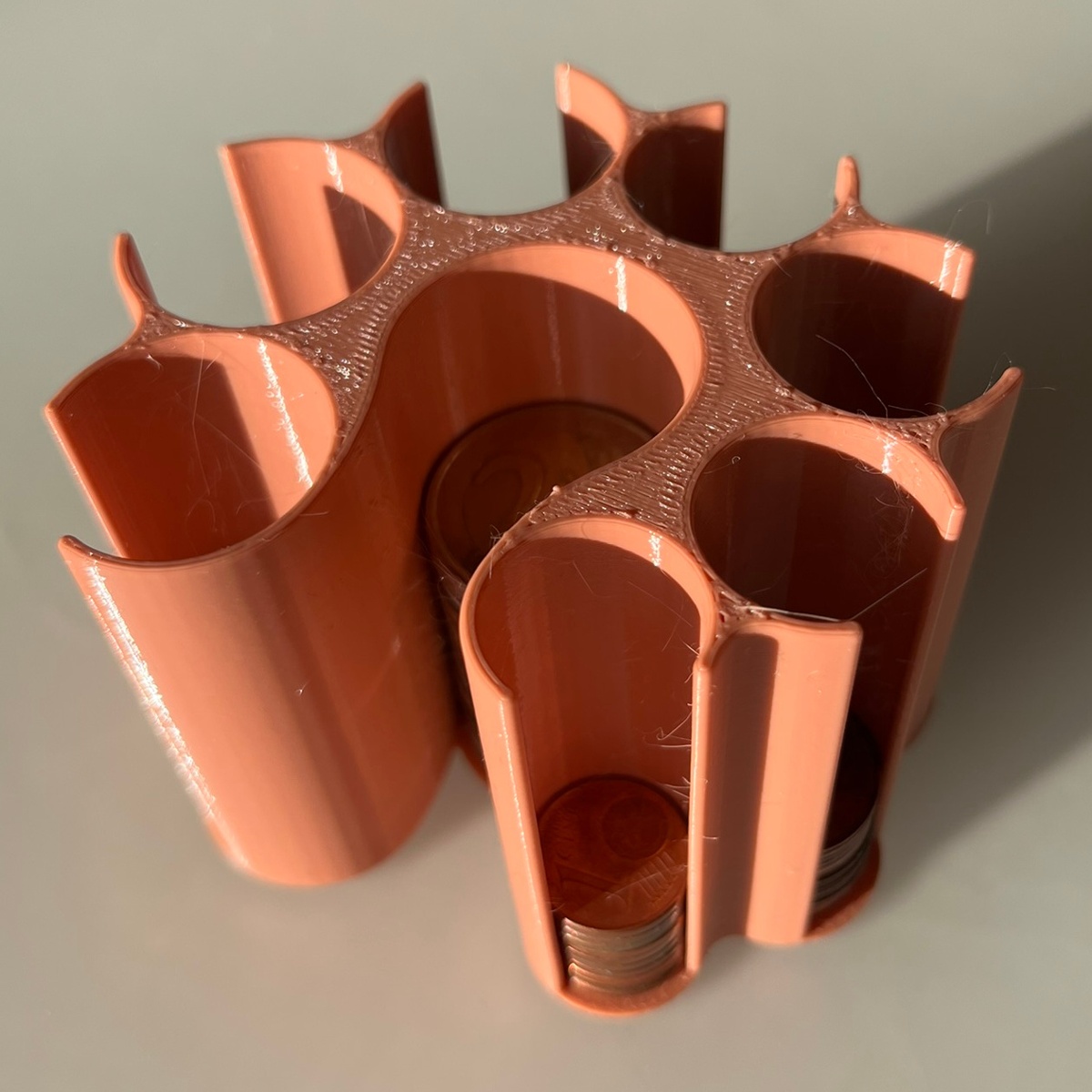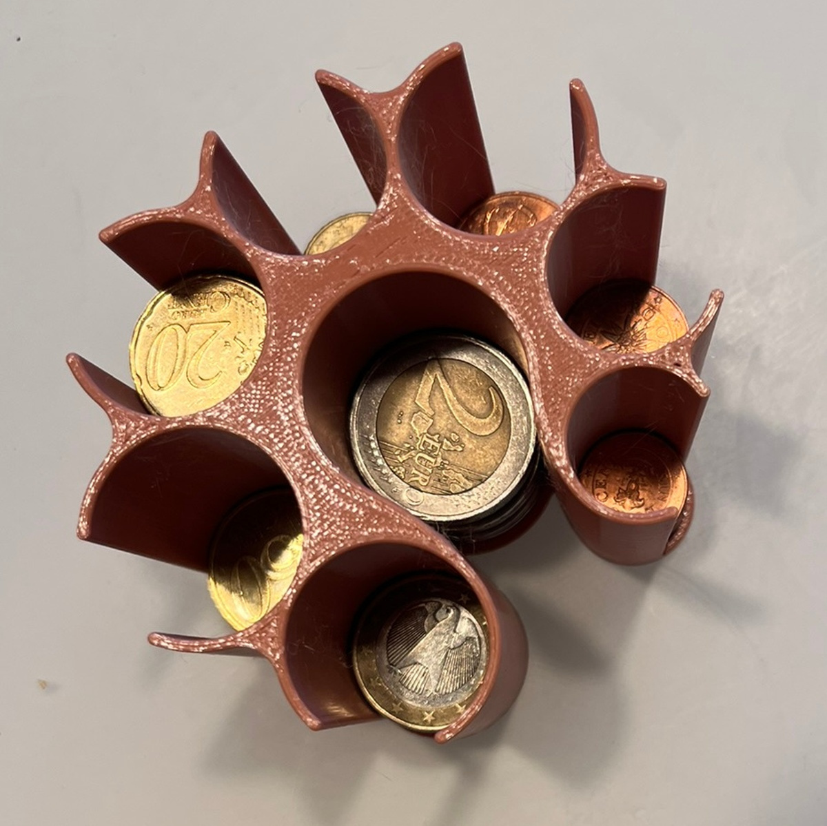 stacking and easy removal of 1, 2, 5, 10, 20, and 50 cent coins, as well as 1€ and 2€ coins.